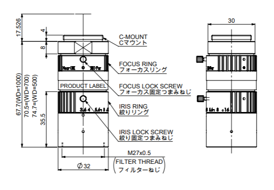 • 外径x鏡筒長 (mm)